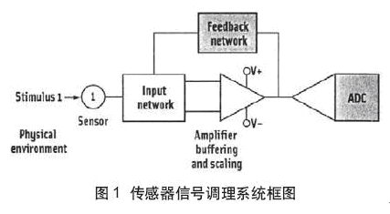 傳感器根據(jù)所測物理量的類型可分類為:測量溫度的熱電偶、電阻溫度檢測器(RTD)、熱敏電阻;測量壓力或力的應(yīng)變片;測量溶液酸堿值的PH電極;用于光電子測量光強(qiáng)的PIN光電二極管等等。傳感器可進(jìn)一步分類為有源或無源。有源傳感器需要一個外部激勵源(電壓或電流源),而無源傳感器不用激勵而產(chǎn)生自己本身的電壓。通常的有源傳感器是RTD、熱敏電阻、應(yīng)變片,而熱電偶和PIN二極管是無源傳感器。為了確定與傳感器接口的放大器所必須具備的性能指標(biāo),設(shè)計人員必須考慮傳感器如下的主要性能指標(biāo):