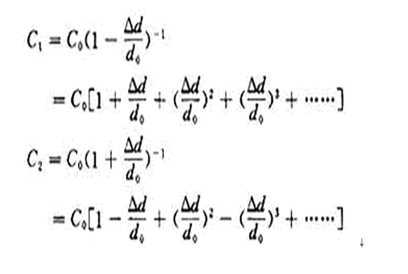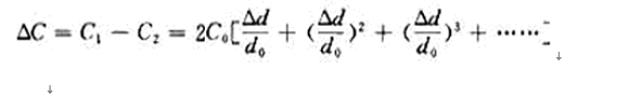 雖然電容的變化量仍舊和位移Δd成非線性關(guān)系,但是消除了級數(shù)中的偶次項,使線性得到改善。當