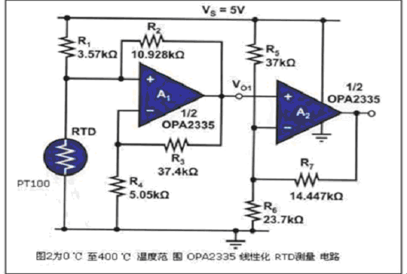 a rtd測(cè)量電路-0℃至400℃溫度范圍的ptl00傳感器線性化測(cè)量電路