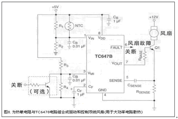 用熱敏電阻與風(fēng)扇控制器集成電路(ic)組合解決控制大功率電路的散熱方案