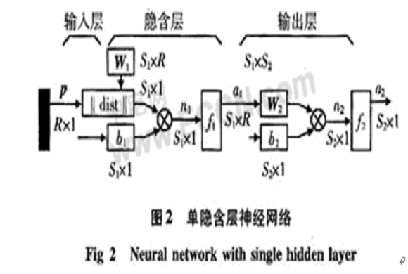 其中,p為輸入矢量,R為輸入矢量維數(shù),S1為隱含層神經(jīng)元個(gè)數(shù),S2為輸出層神經(jīng)元個(gè)數(shù),W1為隱含層神經(jīng)元權(quán)值矩陣,W2為輸出層權(quán)值矩陣,b1為隱含層神經(jīng)元閥值,b2為隱含層神經(jīng)元閥值,n1為隱含層輸入節(jié)點(diǎn),n2為輸出層節(jié)點(diǎn)。f1為S型函數(shù),f2為purelin型函數(shù)。神經(jīng)網(wǎng)絡(luò)算法是用于前饋多層網(wǎng)絡(luò)的學(xué)習(xí)算法。如果輸出不能得到期望的輸出,則轉(zhuǎn)入后向傳播。通過誤差的后向傳播調(diào)整各層之間的權(quán)系數(shù)。反復(fù)輸入樣本序列,直至權(quán)系數(shù)不在改變?yōu)橹?,輸出誤差在規(guī)定的范圍之內(nèi)。算法采用如下改進(jìn):1)采用模擬退火法以克服局部最?。?)用奇函數(shù)作激勵(lì)函數(shù)和傳播過程中采用新誤差傳播因子完善該算法收斂性問題。
