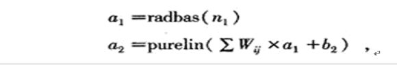 鑒于BP神經(jīng)網(wǎng)絡(luò)訓(xùn)練過程需要對(duì)所有權(quán)值和閥值進(jìn)行修正,是一種全局逼近神經(jīng)網(wǎng)絡(luò),但訓(xùn)練速度較慢,不適用實(shí)時(shí)性較強(qiáng)場(chǎng)合,故采取了局部逼近網(wǎng)絡(luò)——徑向基網(wǎng)絡(luò)。算法訓(xùn)練關(guān)系式如下: