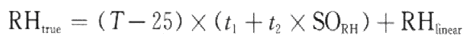 由于溫度對濕度的影響十分明顯,而實際溫度和測試參考溫度25℃有所不同,所以對線件補償后的濕度值進行溫度補償很有必要。補償公式如下: