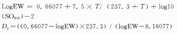 露點是一個特殊的溫度值,是空氣保持某一定濕度必須達到的最低溫度。當(dāng)空氣的溫度低于露點時,空氣容納不了過多的水分,這些水分會變成霧、露水或霜。露點可以根據(jù)當(dāng)前相對濕度值和溫度值計算得出,具體的計算公式如下: