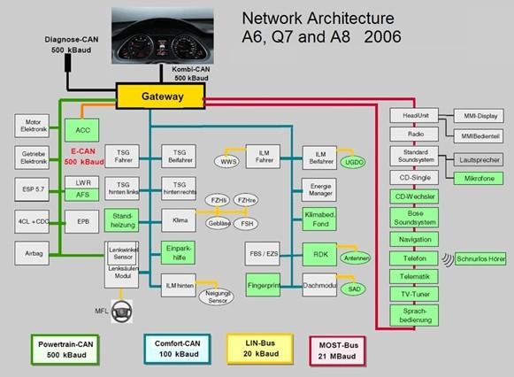 例如,可能會(huì)通過診斷用CAN總線來訪問每個(gè)單獨(dú)的ECU、詢問其狀態(tài)、讀取錯(cuò)誤代碼,甚至刷新程序固件。如今,出于成本考慮,許多應(yīng)用中常常會(huì)共享傳感器。這意味著一個(gè)傳感器模塊的測(cè)量值將被幾個(gè)ECU處理。