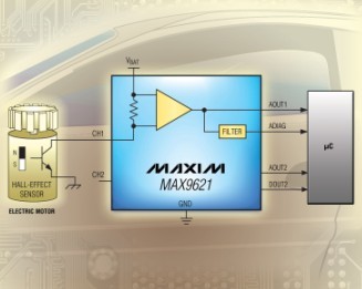 Maxim推出帶有模擬和數(shù)字輸出的雙通道、2線霍爾傳感器接口MAX9621。該器件可通過在模擬輸出端對線性信息對應(yīng)的傳感器電流進行鏡像或通過經(jīng)過濾波的數(shù)字輸出,使微處理器能夠監(jiān)測霍爾傳感器的狀態(tài)??删幊淘O(shè)置數(shù)字輸出的輸入電流門限。高邊電流檢測架構(gòu)省去了地回路引線,且不會發(fā)生地電位偏移,因而可降低50%的走線成本。MAX9621非常適合用于汽車車身控制器(例如:車窗升降控制器)。