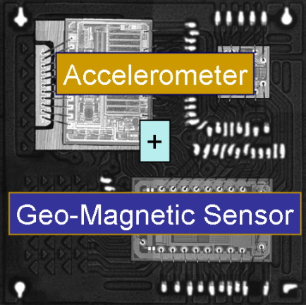 隨著手機(jī)成為傳感器最熱的應(yīng)用領(lǐng)域,當(dāng)配合加速計(jì)實(shí)現(xiàn)傾斜補(bǔ)償羅盤(pán)應(yīng)用時(shí),磁感應(yīng)計(jì)越來(lái)越被市場(chǎng)看好。例如,意法半導(dǎo)體的6D模塊LSM303DLH就是一個(gè)有6個(gè)自由度(6 DOF)的磁感應(yīng)計(jì)。 這款產(chǎn)品在一個(gè)超小的LGA封裝內(nèi)集成一個(gè)高性能的3軸加速計(jì)與一個(gè)高分辨率的3軸磁感應(yīng)計(jì)(圖)。磁感應(yīng)計(jì)單元包括附加的電流帶,可以通過(guò)電驅(qū)動(dòng)磁極“置位”或“復(fù)位”,并施加一個(gè)磁場(chǎng)偏移量來(lái)修正環(huán)境磁場(chǎng)。