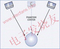 左右聲像直接出現(xiàn)在你身邊,而中間聲像則會(huì)出現(xiàn)在你的頭部?jī)?nèi)。這種“腦內(nèi)”效果是非真實(shí)的,并且會(huì)導(dǎo)致聽者的疲勞。要通過耳機(jī)來刻畫令人信服的雙聲道立體聲已經(jīng)具有極大的難度——對(duì)于通常需要使用五只揚(yáng)聲器來還原節(jié)目的環(huán)繞聲而言,那更是一種挑戰(zhàn)。多重?fù)P聲器家庭影院系統(tǒng)不僅象立體聲系統(tǒng)那樣將立體聲像排列在你面前,而且還將你融入音響氛圍之中,使你在欣賞電影電視時(shí)有“身臨其境”的震撼感覺(參見圖3)。