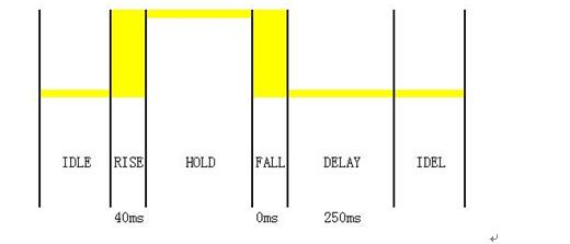 圖4是一個觸摸按鍵應(yīng)用中一次典型的按鍵波形,每個按鍵按下后,系統(tǒng)都需輸出對應(yīng)的電壓值以供其他系統(tǒng)檢測。該應(yīng)用要求響應(yīng)時間小于等于40ms,當(dāng)按鍵被長按時,需要一直輸出按鍵電壓,即使按鍵釋放后,仍需250ms時間保持原有按鍵電壓,之后停止輸出按鍵電壓,進(jìn)入空閑狀態(tài)。系統(tǒng)共包含12個觸摸按鍵,當(dāng)多個按鍵被同時按下時,系統(tǒng)不響應(yīng)。系統(tǒng)低功耗設(shè)計要求為,系統(tǒng)待機(jī)時沒有按鍵操作的平均電流應(yīng)至少小于1mA。