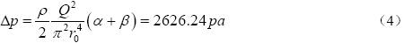 通過上式可以通過壓差來計算流量,為了平衡擴張和壓縮作用以及盡量減少能量損失,當θ=7°,φ=0.13,ζ=0.02,且流量Q為 61.1L/min,即在該管徑下流速為1m/s時,對異徑管尺寸進行優(yōu)化為:a=0.4r0,b=0.8r0,a=2.9264,b=3.1109,α+β=6.0373,α/β=0.9407