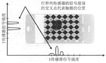 圖4 行和列傳感器的信號(hào)強(qiáng)度確定了觸摸的位置