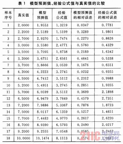 為了驗(yàn)證測試結(jié)果的可靠性,根據(jù)網(wǎng)絡(luò)訓(xùn)練的結(jié)果,把測試結(jié)果與真實(shí)值進(jìn)行對比。為了突出該方法的優(yōu)越性,與經(jīng)驗(yàn)公式計(jì)算出來的距離值進(jìn)行比較。表1為模型預(yù)測值、經(jīng)驗(yàn)公式值與真實(shí)值的比較。