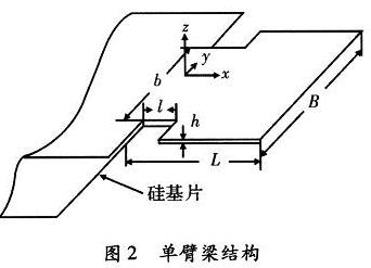 壓阻式加速度傳感器的彈性元件一般采用硅梁外加質(zhì)量塊,質(zhì)量塊由懸臂梁支撐,并在懸臂梁上制作電阻,連接成測量電橋。在慣性力作用下質(zhì)量塊上下運動,懸臂梁上電阻的阻值隨應(yīng)力的作用而發(fā)生變化,引起測量電橋輸出電壓變化,以此實現(xiàn)對加速度的測量。