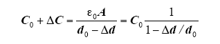 為提高傳感器的靈敏度K,提高精度、減小非線性誤差&,電容傳感器大都采用差動(dòng)式結(jié)構(gòu)。在差分電容傳感器中,當(dāng)動(dòng)極板的移動(dòng)距離為Dd時(shí),電容C1的間隙d1變?yōu)閐0-Dd,電容C2的間隙d2變?yōu)閐0+Dd。