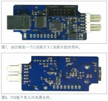 本設(shè)計裝在一個2.36英寸×1.38英寸的外殼中(圖7),PCB下方有幾只無源元件(圖8)。提供了詳情,能下載到整個設(shè)計,以及CAD/CAM文件、物料清單和軟件。