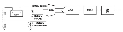 電池電壓通過(guò)一個(gè)直接從電池正極分接出來(lái)的阻性衰減器來(lái)檢測(cè)。為檢測(cè)電流,將一個(gè)檢測(cè)電阻(12V應(yīng)用一般使用100mΩ)放在電池負(fù)極與地之間。在這種配置中,汽車的金屬底盤一般為地,檢測(cè)電阻安裝在電池的電流回路中。在其它配置中,電池的負(fù)極是地。對(duì)于SoH 計(jì)算,還必須檢測(cè)電池的溫度?! ?br />