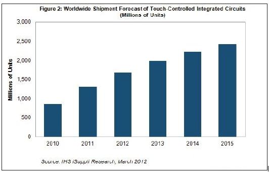 在蘋(píng)果公司iPhone和iPad暢銷(xiāo)的推動(dòng)下,智能手機(jī)和媒體平板中的觸控屏急劇增長(zhǎng),從而導(dǎo)致觸摸控制器集成電路(IC)出貨量在短短五年內(nèi)將增長(zhǎng)近兩倍。