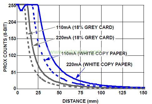ISL29043是一款低功耗的環(huán)境光和接近檢測傳感器,典型的工作電流只有136μA(110μA用于傳感器和內(nèi)部電路,約28μA用于LED),這是在220毫安紅外LED電流,點(diǎn)亮脈沖電流持續(xù)時(shí)間為100μs,休眠時(shí)間為800mS的條件下測得的。