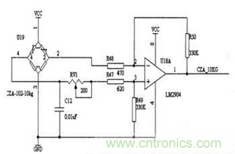 圖3:壓力傳感器電橋檢測電路