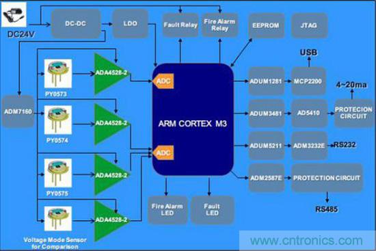 作為一個參考設(shè)計,這個方案的主控芯片選用了流行的ARM Cortex-M3架構(gòu),這樣能方便開發(fā)者將自己的算法移植進行移植,給開發(fā)者帶來更大的靈活度。同時,參考方案中支持豐富的接口,如RS232、RS485,能夠滿足大多數(shù)應用場景的需求。