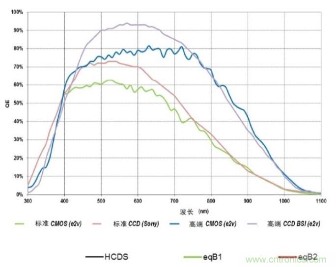 量子效率(Quantum efficiency ,QE) 是直接影響圖像傳感器光電性能的因素,因?yàn)楣怆娹D(zhuǎn)換效率的任何損耗都會直接減低信噪比 (Signal-To-Noise- Ratio,SNR) 。它的影響是兩方面的,因?yàn)楫?dāng)散粒噪聲(信號的平方根)是主要噪聲源時,QE不單是信噪比的被除數(shù)(信號),同時也是除數(shù)(噪聲)。在這一點(diǎn)之上,CCD和CMOS處于同一水平,可是CCD在QE改進(jìn)方面累積有多年的技術(shù)工藝優(yōu)化,而在CIS的QE改進(jìn)發(fā)展相對較遲。基于硅物質(zhì)的物理特性,較長的波長能穿透光敏轉(zhuǎn)換地帶,所以會使用厚的外延材料來增加上紅色和近紅外線波長的QE。根據(jù)比爾朗伯定律(Beer-Lambert law),被吸收的能量是與介質(zhì)的厚度成指數(shù)關(guān)係。高端應(yīng)用的 CCD 利用較厚的硅物質(zhì)和背照(back side illumination ,BSI)工藝以恢復(fù)高寬帶QE和近紅外線(near infrared ,NIR)敏感度,因而擁有優(yōu)勢。