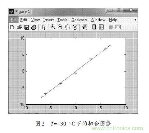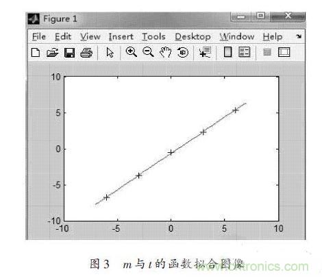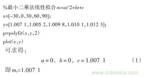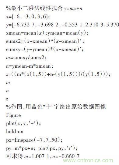 由于按照最小二乘法的基本步驟進行擬合的計算量比較大,所以本文采用Matlab進行數(shù)據處理,這樣不但可以減少復雜的計算過程,而且還可以保證較高的計算精度。