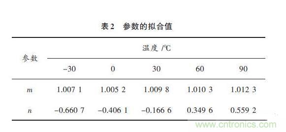 依次求出不同溫度下參數(shù)m 和n 的值,計算結果如表2所示。