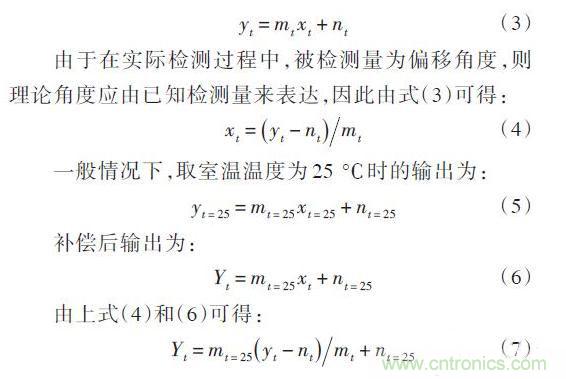 傳感器未經溫度補償時的輸出為y = mx + n ,即在t ℃時,無補償輸出為: