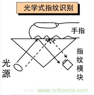 光學傳感器的發(fā)展歷史可能是最久的了,已經(jīng)有30年的歷史了。實現(xiàn)的原理也是最簡單的。 它主要是利用光的折攝和反射原理,將手指放在光學鏡片上,手指在內(nèi)置光源照射下,光從底部射向三棱鏡,并經(jīng)棱鏡射出,射出的光線在手指表面指紋凹凸不平的線紋上折射的角度及反射回去的光線明暗就會不一樣。用棱鏡將其投射在電荷耦合器件上CMOS或者CCD上,進而形成脊線(指紋圖像中具有一定寬度和走向的紋線)呈黑色、谷線(紋線之間的凹陷部分)呈白色的數(shù)字化的、可被指紋設(shè)備算法處理的多灰度指紋圖像。