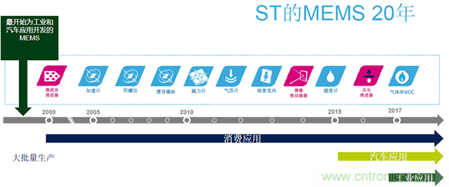 在過去的20年,消費(fèi)類應(yīng)用使不同類別的MEMS傳感器實(shí)現(xiàn)了從雛形,到大批量生產(chǎn)、直至大批量應(yīng)用的過程,這些傳感器包括加速計(jì)、陀螺儀、慣導(dǎo)模塊、磁力計(jì)、氣壓計(jì)、溫度計(jì)、氣體壓力計(jì)、以及最近幾年越來越多的環(huán)境類傳感器。