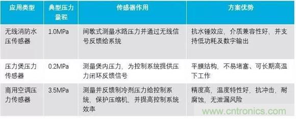 物聯(lián)網(wǎng)及家電領(lǐng)域陶瓷電容壓力傳感器典型應用如下表所示: