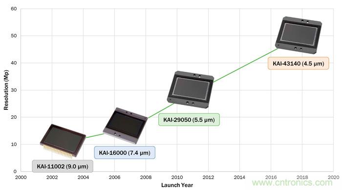 Interline Transfer CCD技術(shù)用于開發(fā)高分辨率、大格式圖像傳感器已超過15年,其分辨率隨市場需要逐漸提高。例如,2003年的KAI-11000圖像傳感器以35 mm光學格式提供1100萬像素的分辨率;但到2011年,這種相同的光學格式幾乎可支持三倍的分辨率。