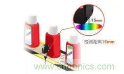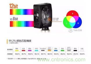 2、用于識別和比較物體表面顏色值(RGB)的顏色傳感器。這類傳感器一般采用通過RGB(紅色,綠色,和藍(lán)色)LED光源和運(yùn)算檢測物體反射光中R,G,B波長比率,來判斷檢測到的顏色是否和設(shè)定的一致。類似于彩色相機(jī)。